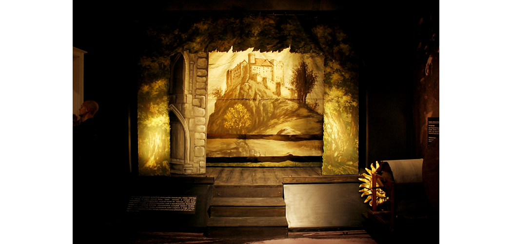 Továbbhaladva Balog István vándortársulatának világába csöppenünk. Közepén egy függönyökkel ellátott színpad áll, amelyet Mira János díszlettervező korabeli leírások alapján rekonstruált. A Balog István által vezetett vándortársulat emlékét őrző dokumentumok – szövegkönyvek, színlapok – is láthatok a teremben. A legizgalmasabb elemek kétségtelenül az „effektus masinériák”: az esőgép, a szélgép és a mennydörgés hangját imitáló szerkezet. A látogatók nem csak a színpadra állhatnak fel, ha kedvük tartja, de működésbe hozhatják a színpadi hangeffektusokat keltő eszközöket is.