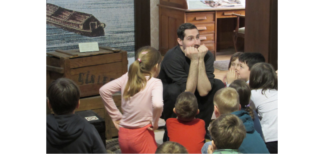 J.E.: Azt a fajta szerepjátékot kedvelem, amiben világos a kerettörténet, a probléma vagy a konfliktus, és amelynél mindenki tudja, hogy fiktív helyzet, de mégis hihető, közel áll a valósághoz, jó játék benne lenni és szabadon alakítani. Nagyobbakkal játékvezetői szerepben vagyok, igyekszem bekeretezni, mederben tartani, majd lezárni a játékot. Kisebbekkel ez kicsit más. Velük közösen megyünk bele a mesébe, amiben játékvezetőként mesei szerepet játszom, pl. a Sárközi sárkány mesejátékban a sárkány titkáraként segítem őket utolérni a félelmetes sárkányt (ld. a borítóképen - a szerk., A sárkány titkára és a láthatatlan Billog Banda), vagy a Kanálmesében mint kanálkutató együtt vizsgáljuk a világ kanalait. A drámás játék természete szerintem attól függ, milyen korosztállyal mit szeretnénk elérni. Kicsiknél indirekt cél a múzeummal kapcsolatosan a pozitív érzelmek és fantáziavilág erősítése, nagyobbaknál az összefüggések és a gondolkodás inspirálása, még nagyobbaknál a kritikai gondolkodás és a kreativitás kifejezése. Szerepjátékban mindezeket nem direkt célként, nem feladatként érjük el, hanem játékban, közvetetten éljük át. A klasszikus drámás módszerek közül az „állóképet” szeretem használni, jól működik a statikus kiállításokban, ahol szintén minden áll, a játék és a környezet nagyon jól rímel egymásra.