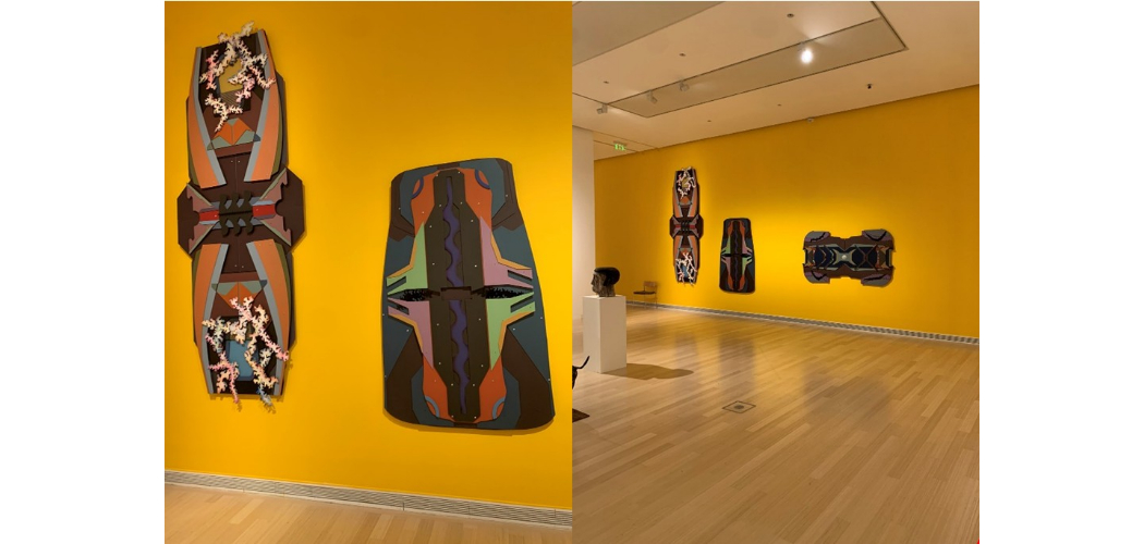 Az indák után újabb erős színekkel készített művek közé érkezünk Tollas Erik totemszerű hatalmas képeivel. Jelenleg a totem világ inspirálja a művészt, aki a színekben próbálja ezek erőit és energiáit kifejezni. Érdekesség, hogy az alkotások a filmipar kiselejtezett elemeiből épülnek fel.