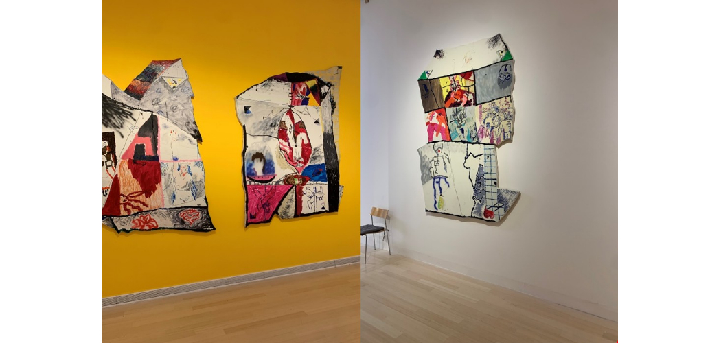 A színek aztán egy picit megállnak, monokrómmá válnak, de újabb terem tárul fel előttünk, ahol Pap Gábor nagyméretű színes álom vásznai aztán újra életre keltik az adott teret. Érdekes látomásai szakaszokra bontva jelennek meg, vásznai kitépett papírlapokra emlékeztetnek.