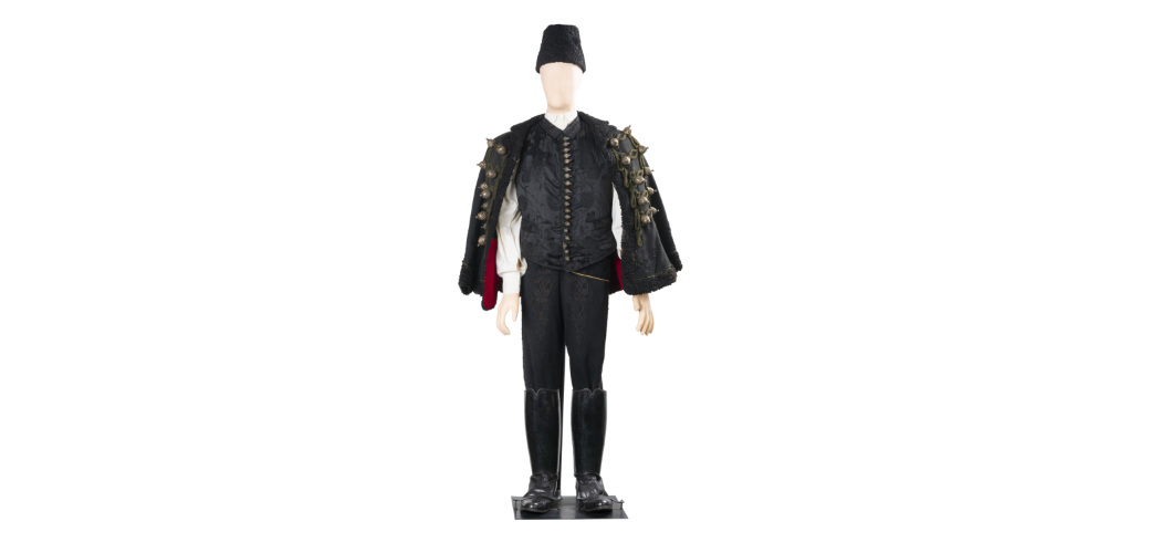 A férfi viselet szintén ebben a sorrendben található meg. A sort, ahogy a női viseletnél is láthattuk, egy teljes kép kezdi, a kiállításban szereplő „szolnoki férfi”-n látható férfi mente, csizmanadrág, mellény, fehér férfi ing, kucsma és csizma.