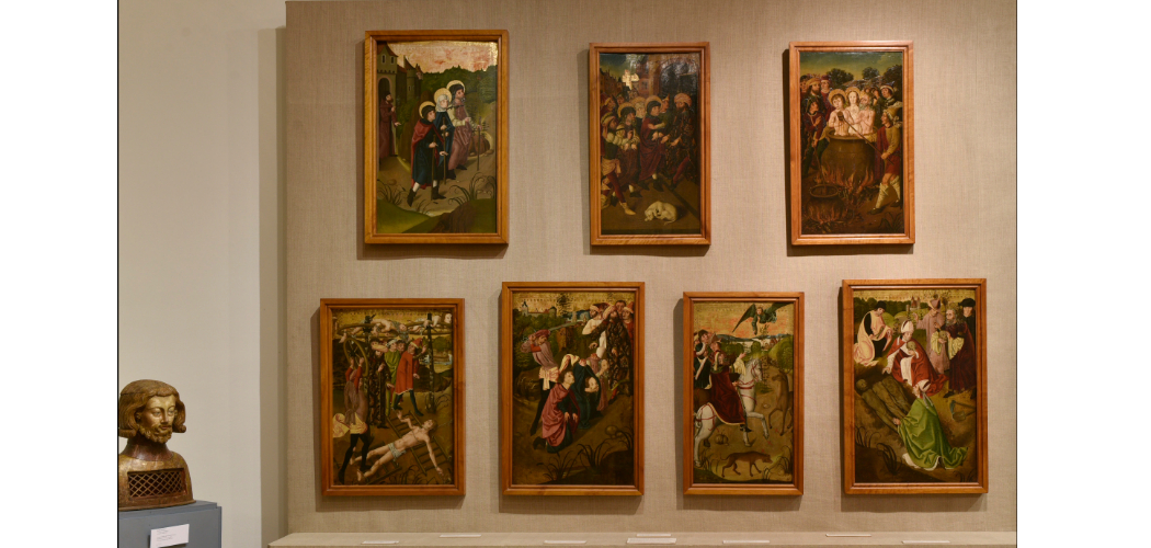 A második terem, mely magyar, német, és osztrák középkori táblaképeknek és szobroknak ad otthont, egy, a bécsi ill. bécsújhelyi festőműhelyekhez kapcsolódó műveket bemutató sarokkal bővült. Itt látható két eddig is bemutatott, női szenteket ábrázoló merevszárny, valamint az ünnepi oldalukon Jézus gyermekségének jeleneteit mutató két mozgószárny is, melyek eredetileg ugyanahhoz a retábulumhoz tartoztak és melyek most kiegészültek a frissen restaurált Krisztust és az apostolokat mutató predellával. Blasius Höfel gyűjteményében a négy oltárszárny és a predella egy Mária koronázását mutató oltárszekrénnyel együtt teljes szárnyasoltárként szerepelt. Az oltárszekrényre mindeddig nem sikerült rálelni, de a retábulum eddig azonosított darabjai most együtt láthatóak.