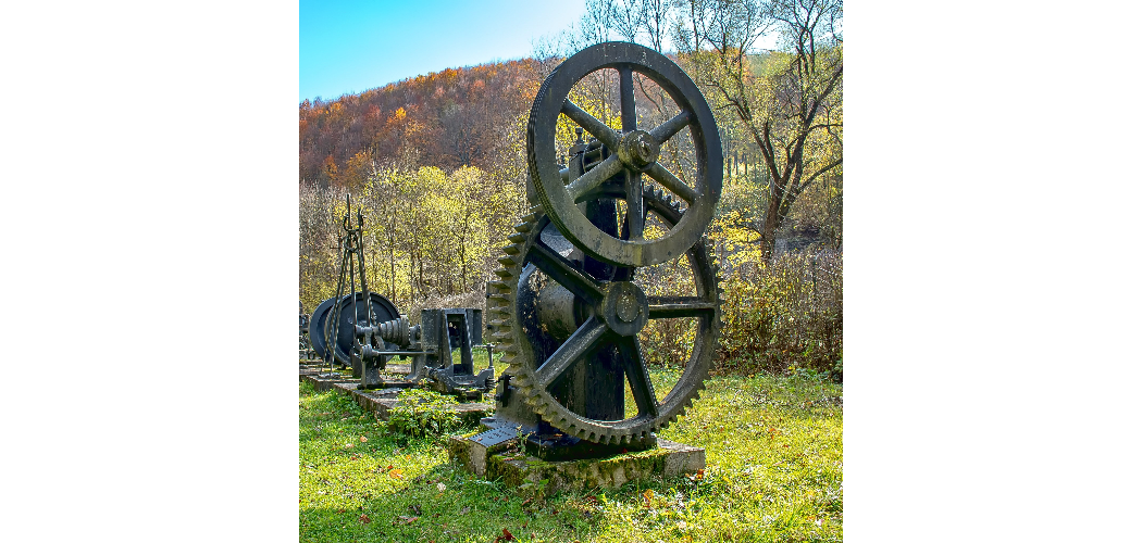 A patak túloldalán a vaskohászatban és a bányászatban működtetett gépek skanzenje található.