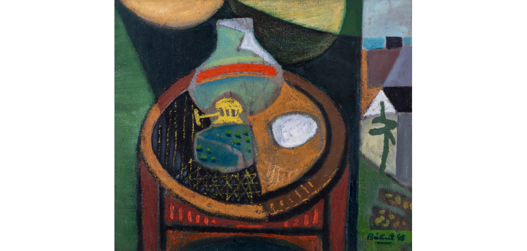 A kiállításon többek között Anna Margit, Barcsay Jenő, Bálint Endre, Bán Béla, Barta Lajos, Bokros Birman Dezső, Czóbel Béla, Egry József, Fekete Nagy Béla, Forgács Hann Erzsébet, Gadányi Jenő, Gyarmathy Tihamér, Jakovits József, Korniss Dezső, Lossonczy Tamás, Marosán Gyula, Martinszky János, Martyn Ferenc, Márffy Ödön, Rozsda Endre, Schubert Ernő, Szántó Piroska, Vajda Júlia, Vilt Tibor, Zemplényi Magda alkotásai szerepelnek.